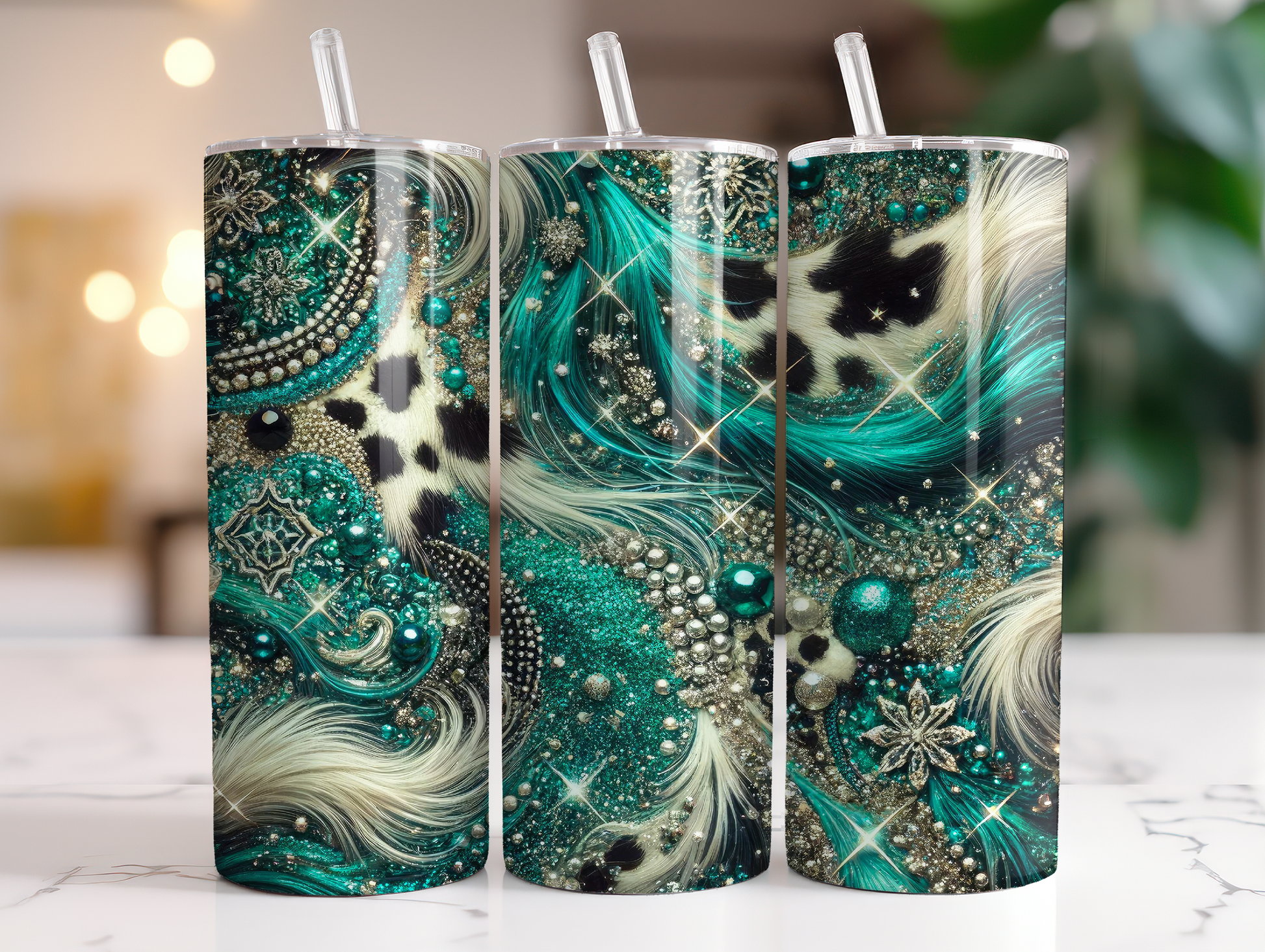 Teal Sparkle Cowhide 20oz Tumbler