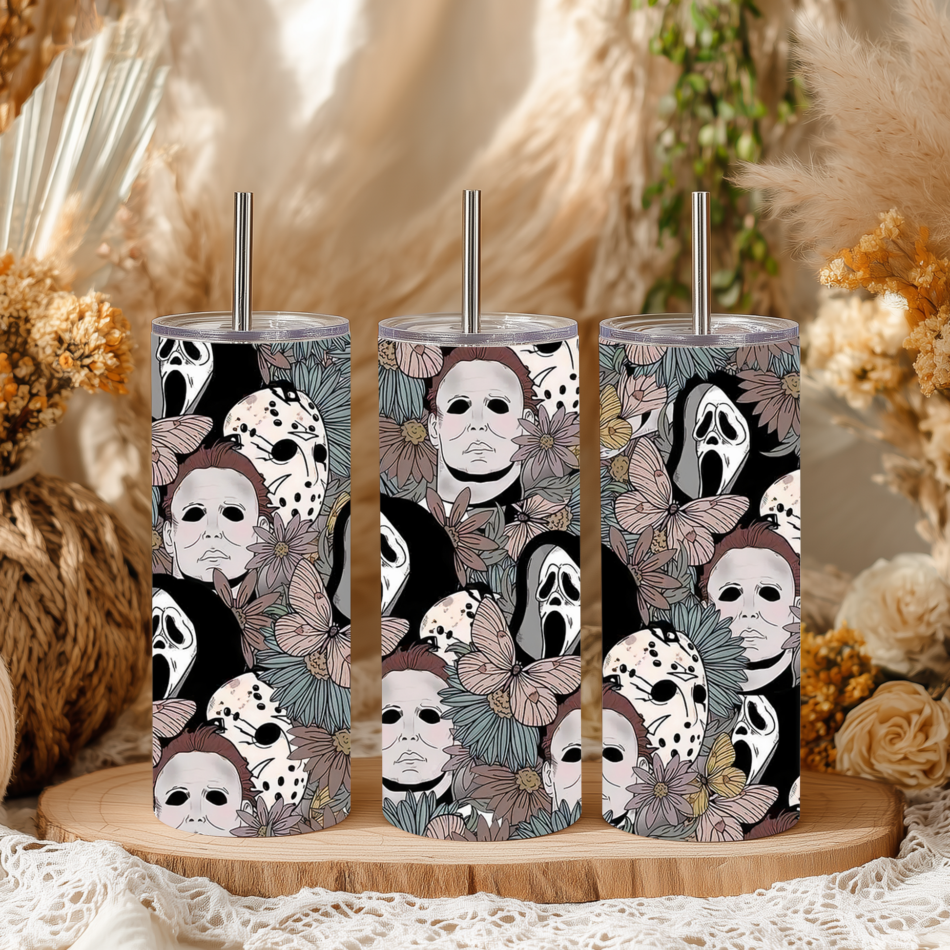 Flowered Scary Halloween 20oz Tumbler