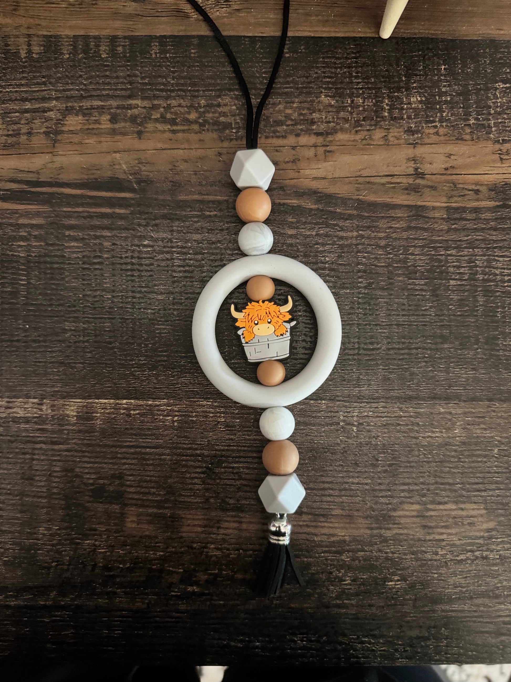 Grey Highland Cow Car Mirror Hangers