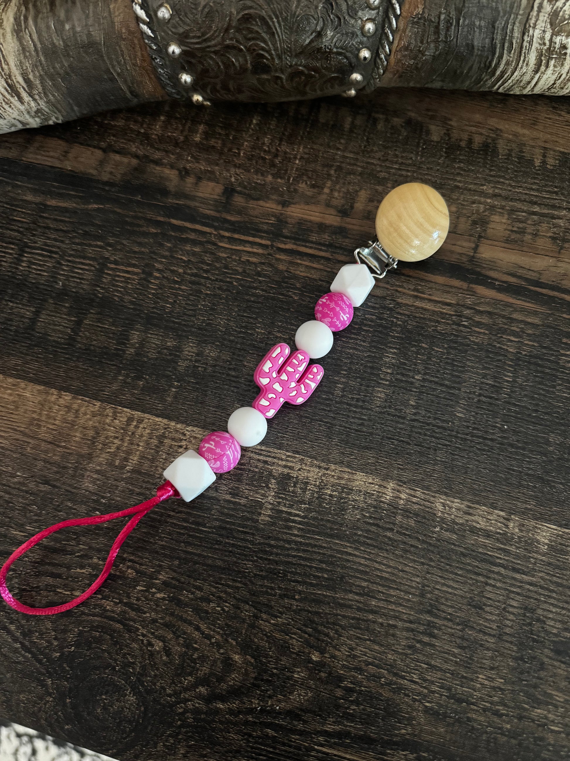 Pink Cactus Silicone Pacifier Clip