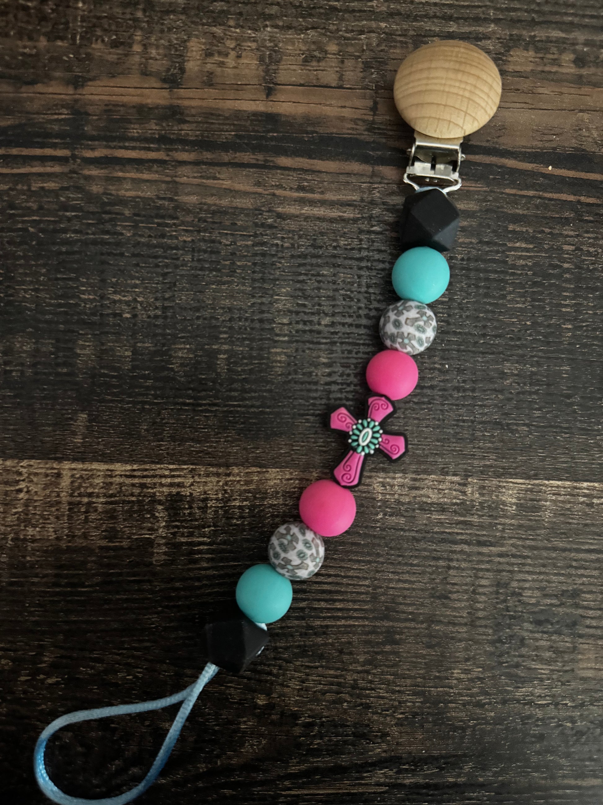 Pink Cross Silicone Pacifier Clip