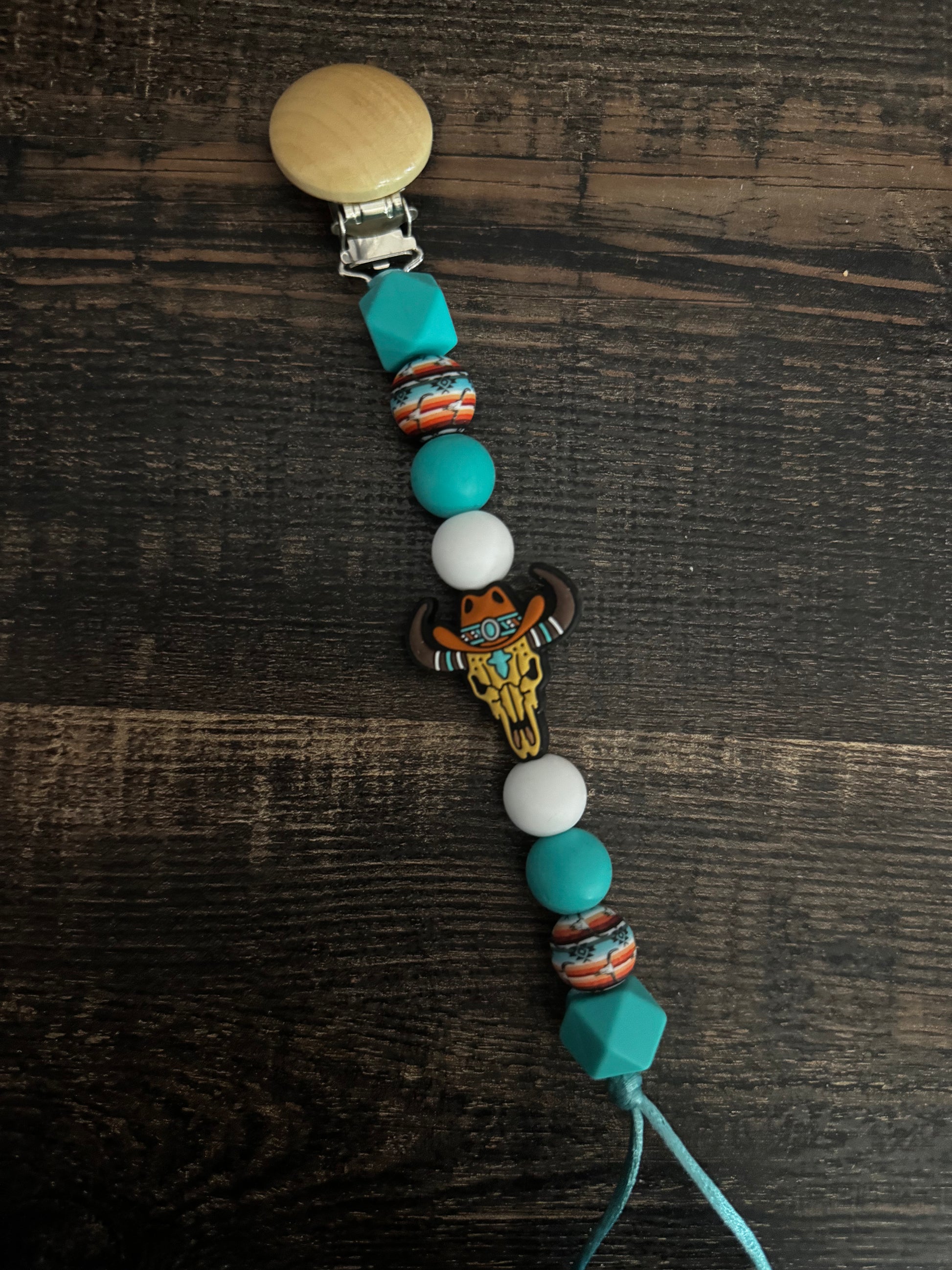 Bull Skull W Cowboy Hat Silicone Pacifier Clip